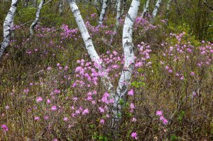 Rhodora (Rhododendron canadense), growing on the mesic till barrens in Pennsylvania’s Pocono Mountains.